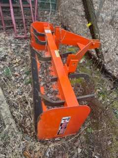 List: Kubota Tractor 4X4 w/ Loader & Bush Hog ~ Polaris 600 Sportsman 4-Wheeler ~ 22” Push Field Trimmer ~ Car Ramps ~ Craftsman 6.5HP Rear Tine Tiller ~ Craftsman Yard Cart ~ Honda Push Mower ~ Poulan Pro Push Mower ~ Electric Cement Mixer ~ Large Job Site Tool Box ~ Motorcycle/ATV Jack (2) ~ Inflatable Boat ~ Mariner 9.9 Long Shaft Motor ~ 220V Stick Welder ~ Aluminum ATV Ramps ~ Weed Eaters ~ Rolling Tool Boxes ~ Lots of Hand Tools ~ 100 Lb Propane Bottle ~ Jack Stands ~ Troy Bilt Riding Mower ~ Tarps ~ Roll of Steel Cable ~ Craftsman Air Compressor ~ Air Tank ~ Dyno-Glo 135,000 BTU Heater, Like New ~ Vise ~ Bench Grinder ~ Straps ~ Yard Tools ~ Land Pride 72” Rock Rake ~ Field General 6’ Box Blade ~ Alitec Pallet Forks ~ Wood 3PH Post Hole Digger ~ 2,300 PSI Pressure Washer ~ Dive Equipment ~ Matco Tool Cart ~ Bicycles ~ Motorcycle Lift Table ~ Large Bug Zapper ~ 20 Lb Propane Bottle ~ 4X4 Posts & Misc. Lumber ~ Cross Draw Bar ~ Agri-Fab Steel Lawn Roller ~ Gazelle Free Style Exerciser ~ Rolling Battery Charger ~ Health Rider ~ Bow Flex Ultimate II ~ UPX 2000 ~ Dewalt 12” Compound Miter Saw ~ And More.